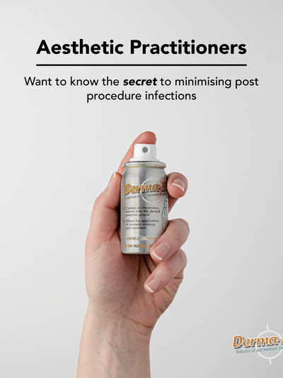 Using Derma-Seal post treatment reduces the risk of the client introducing infection to those treated areas shortly after the procedure and once out of your care. Derma-Seal guards from unintentional touching and environmental factors allowing the treated area to become impervious. A cannula puncture wound for example, can take 4 -6 hours before the natural healings process makes in impervious. Derma-Seal simply acts as an invisible barrier over this period of opportunity and washes off with soap and warm water at the end of the day.